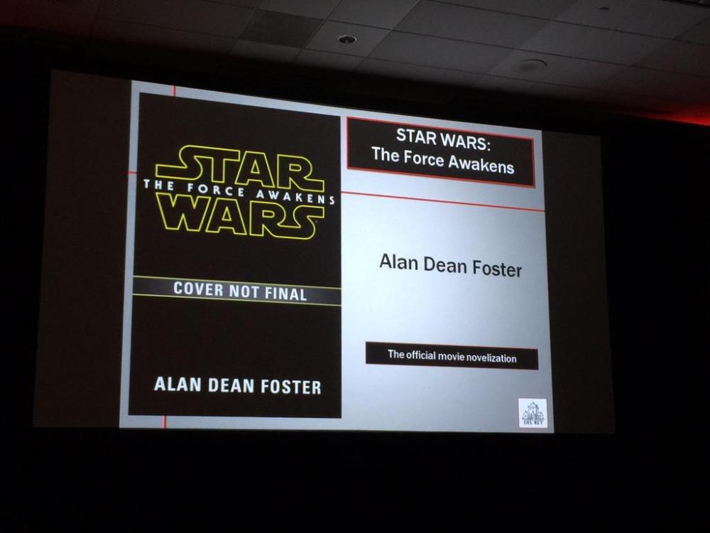 Najveća vest koja nam je stigla sa ovog panela (a koju sam inače dobio sat vremena ranije od pouzdanog izvora) je da je pisac novelizacije Epizode VII, legendarni autor Alan Din Foster (Alan Dean Foster). Foster je inače pisac novelizacije Epizode IV, zatim prve EU knjige Splinter of the Mind’s Eye i još The Approaching Storm. Novelizacija će biti objavljena na dan premijere u e-book formatu, a fizička verzija negde tokom januara.