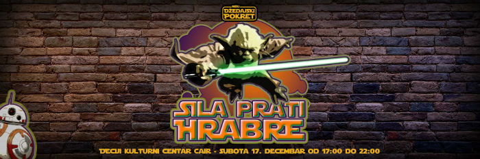 U subotu 17. decembra u prostorijama Dečijeg kulturnog centra Čair u Nišu, u organizaciji Niškog Džedajskog pokreta biće organizovana manifestacija pod nazivom Sila prati hrabre.