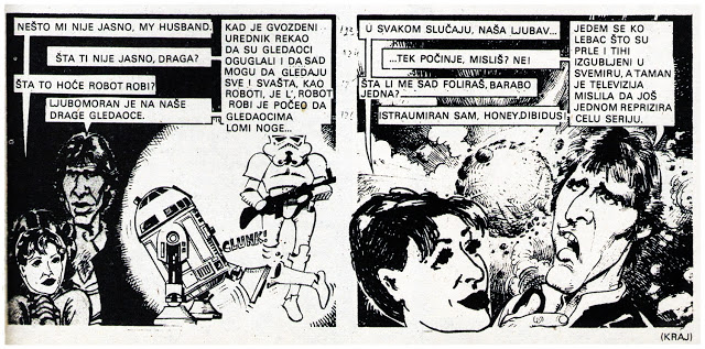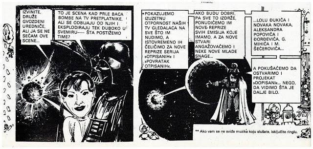 Naime, na leto 1980. godine u specijalnom izdanju Ježa, izašao je šaljivi strip naslova Otpisani u svemiru. Ovaj niz karikatura je na duhovit način prikazao funkcionisanje ondašnje televizije i produkcije serija (koje su se i tada reprizirale po milion puta). Nego, pročitajte strip u nastavku.
