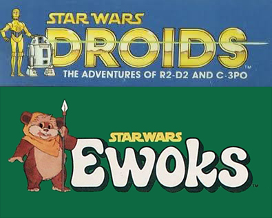 Prve animirane Star Wars serije bile su Droids i Ewoks iz 1985. godine. Obe animirane serije predstavljaju tragično zaboravljene i odbačene delove kulture Star Warsa. Logotipi za obe serije odišu duhom tog vremena i ne uklapaju se u šablon tadašnjeg vizuelnog identiteta filmskog serijala. Droids koristi font Arial Bold, dok Ewoks koristi font Janice Regular.