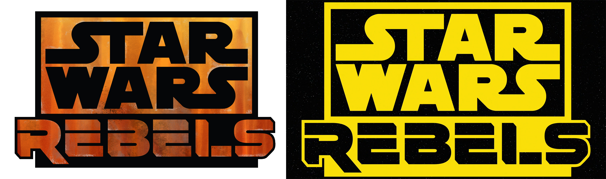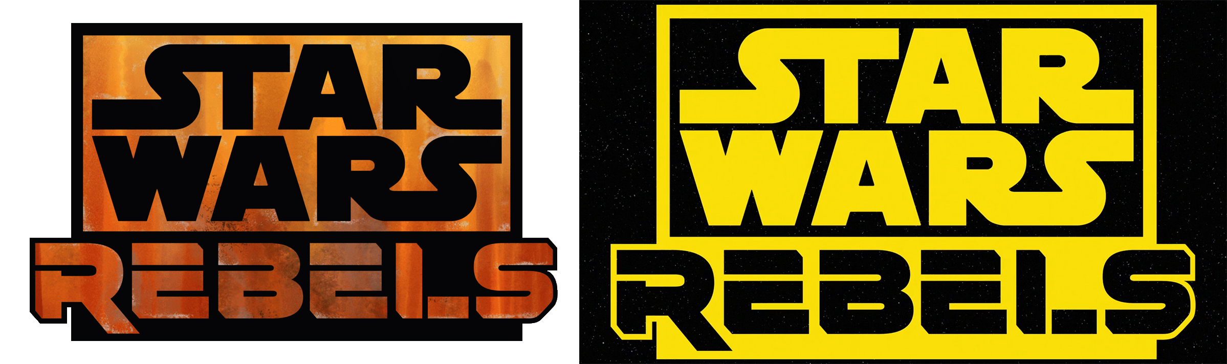 Filonijevo drugo dete, Star Wars: Rebels, prati grupu likova koji putuju na svemirskom brodu „Ghost“. Font korišćen za podnaslov serije je Renegado. Za razliku od The Clone Wars-a, naslov Rebelsa zauzima 1/3 celokupnog logotipa. Više je industrijski, sirov i neuglađen. Alternativna varijanta logoa, u klasično žutoj boji kreirana je kao omaž seriji The Clone Wars.