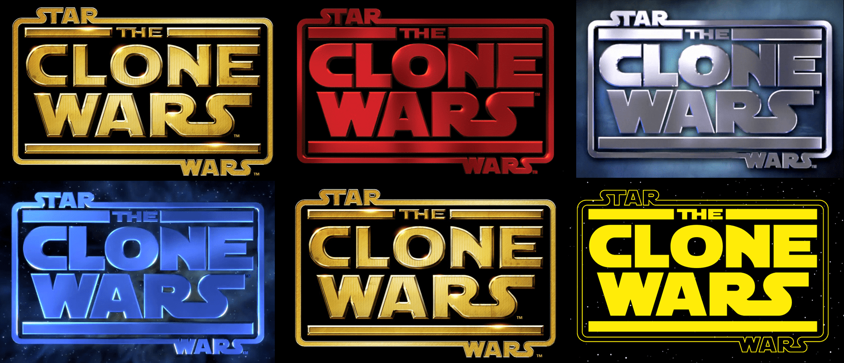 Star Wars: Clone Wars je animirana televizijska serija koja prati Ratove Klonova između Galaktičke Republike i Konfederacije nezavisnih sistema. Serija je prvobitno emitovana u periodu od 2003. do 2005. godine. Producent serije Gendi Tartakovski je želeo da stvori osećaj sličan seriji Band of Brothers, gde bi tokom različitih epizoda bile prikazane različite bitke i doživljaji sa linije fronta tokom Ratova Klonova. Na ovom logotipu primetno je to da je naglašena franšiza u odnosu na podnaslov serijala. Podnaslov odiše modernim, tehničkim i sajber osećajem, dok dodatak mete na slovo “O” nam dodatno ukazuje na samu tematiku priče.