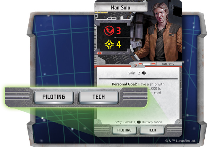 Igrači uzimaju početni novac i kartu svog slabašnog početnog broda (na igraču je da izabere da li će da počne sa G9 Rigger ili G-1A Starfigher). Karta broda je poprilično velika (okvirnim dimenzijama je slična igračkoj tabli) i na njenom obodu se nalaze slotovi za kartice modifikacija, posade i tereta koje brod može da nosi – jedan slot za posadu/teret odgovara jednoj kartici posade/tereta; ne možete da imate više kartica od broj slotova za taj tip kartice. Na samoj karti se pored slike broda nalaze njegove statistike za borbu i snaga hipermotora – broj koji stoji pored snage motora označava koliko mesta na mapi možete da se pomerate.